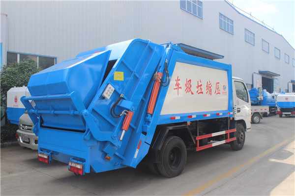 東風(fēng)多利卡壓縮垃圾車專用配置: 采用東風(fēng)多利卡底盤,玉柴102馬力發(fā)動機(jī),軸距3308mm,廂體材料為優(yōu)質(zhì)炭鋼,厚度為5mm,廂體容積為4-5立方米。由裝料機(jī)構(gòu)、壓縮機(jī)構(gòu)、卸料機(jī)構(gòu)、油泵、油箱、控制閥等組成的液壓機(jī)構(gòu)組成。裝料機(jī)構(gòu)由支架、連桿機(jī)構(gòu)、凸輪、掛鉤等組成,在油缸作用下,將垃圾桶內(nèi)的垃圾自動翻轉(zhuǎn)倒入料斗內(nèi)。