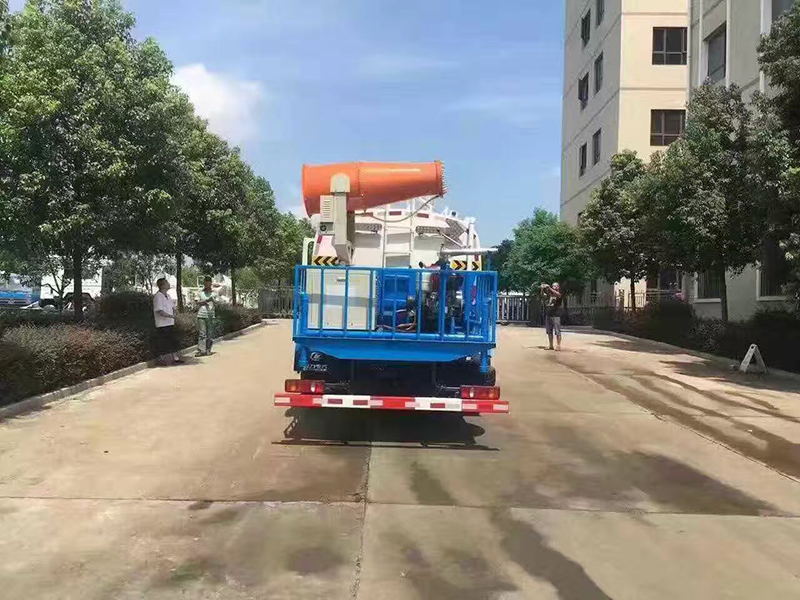 一臺“霧炮”灑水車可噴灑100多米�!办F炮”又叫環(huán)保除塵風送式噴霧機,安裝在車的后半部分。“霧炮”的原理是在液泵噴水后,利用風機將水噴灑出去,能噴灑120米遠、90米高。向天空噴灑水霧,達到抑制揚塵、綠化除塵等效果。