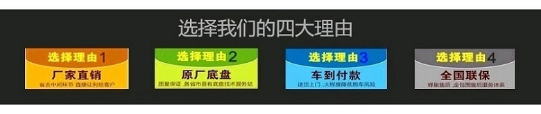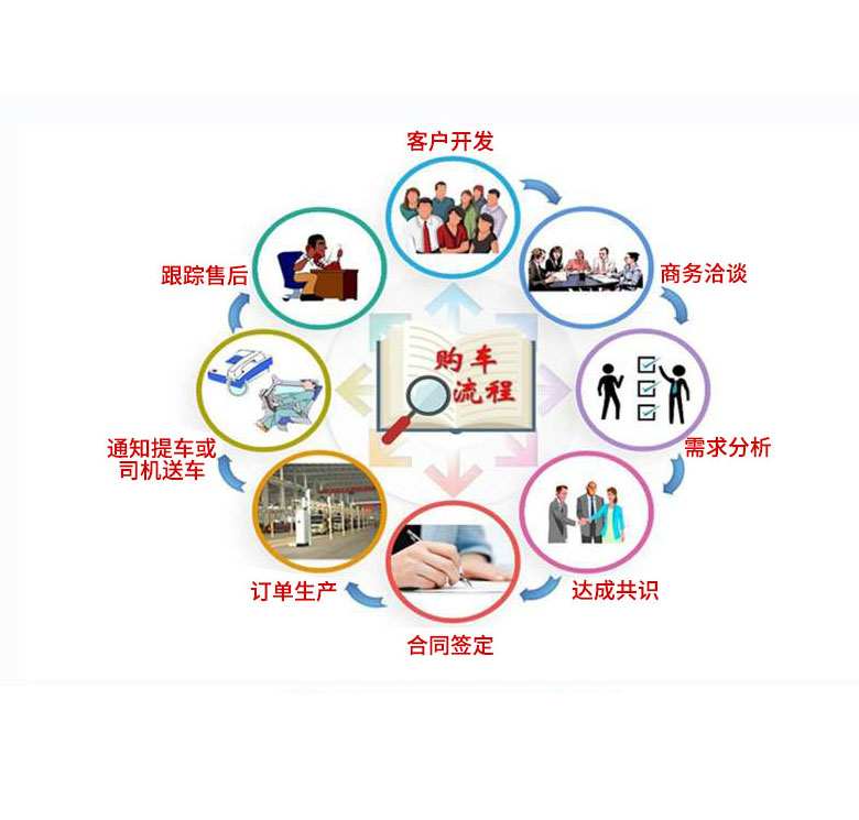 | 2、購車流程: | 1、咨詢洽談(電話洽談或來廠考察洽談) 2、簽訂汽車購銷合同(傳真、郵遞或者來廠簽訂) 3、我廠按時按質(zhì)生產(chǎn) 4、交付驗收 >>點擊查看詳細內(nèi)容 |