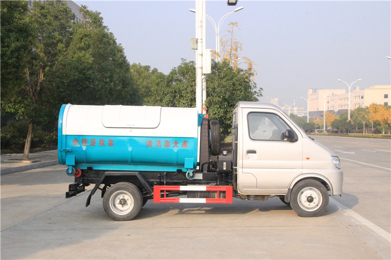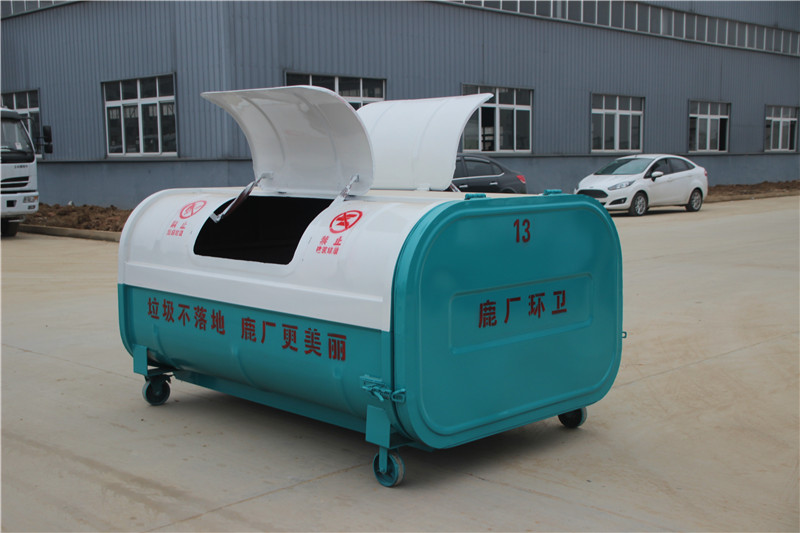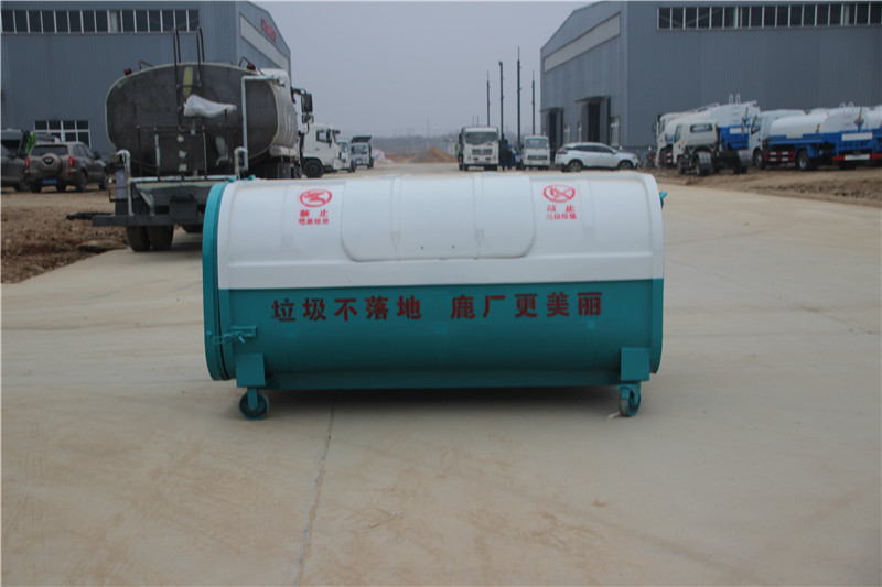 3方勾臂垃圾箱箱體材質(zhì):優(yōu)質(zhì)碳鋼,邊板2mm,底板3mm,帶啟動撐桿,尾部密封條鎖緊。