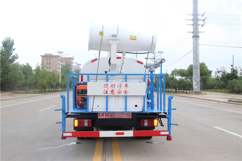 噴霧降塵車工作效率約為普通灑水車的30倍,一臺(tái)噴霧降塵車的工作直徑可覆蓋4個(gè)標(biāo)準(zhǔn)足球場。水箱中的水經(jīng)過霧化后,由高壓風(fēng)機(jī)噴出水霧顆粒極為細(xì)小,達(dá)到了微米級,其吸附力也增加了3倍,耗水量卻降低了70%,遭遇霧霾天氣、空氣質(zhì)量PM2.5嚴(yán)重超標(biāo)時(shí),進(jìn)行液霧降塵、分解淡化空氣中的顆粒濃度、將飄浮在空氣中的污染顆粒物、塵埃等迅速逼降地面,達(dá)到清潔凈化空氣的效果。