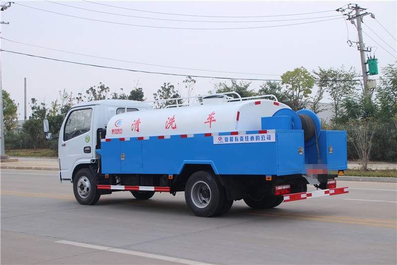 高壓清洗車(chē)也稱(chēng)管道疏通車(chē),通過(guò)高壓水流產(chǎn)生的強(qiáng)大壓力沖開(kāi)被堵塞的管道。主要組成部分為罐體、高壓泵、液壓系統(tǒng)等。高壓清洗車(chē)主要用于清洗城市下水道、管道的沉積物、死角泥溝的疏通,也可用于清洗工業(yè)排液管道、壁面等,清洗公路、廣場(chǎng)地面。
