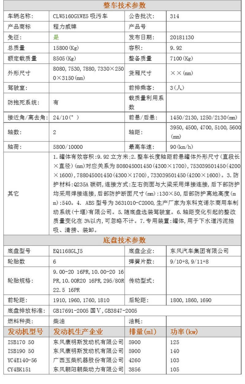 | 東風(fēng)153(老款) 10方吸污車 售后服務(wù)說明 | |